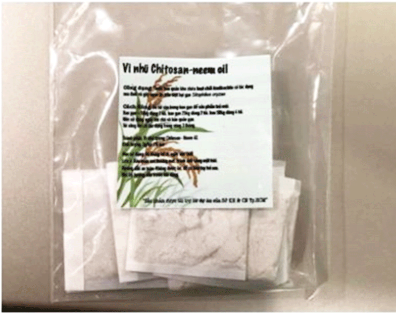 Dựa vào những đặc tính của cây neem có chứa các hoạt chất có khả năng phòng trừ dịch hại, gây ngán ăn, làm giảm sức sinh sản,… ở côn trùng, nhóm nghiên cứu đã chế tạo chế phẩm dạng lỏng vi nhũ tương bao gồm chitosan và dầu neem. Trong đó, hàm lượng dầu neem 43,48%, đạt TCVN 8383-2010, có khả năng huyền phù (hệ thống một chất lỏng và chất rắn phân tán trong chất lỏng nhưng không bị hòa tan) trong nước tốt, tạo điều kiện cho người sử dụng xử lý kho phun sương hoặc phun mù. Đồng thời, nhóm cũng chế tạo chế phẩm nói trên dạng bột, đựng trong các túi vải không dệt, có hàm lượng dầu neem 4% có thể phòng trừ mọt gạo bằng phương pháp xông hơi.
