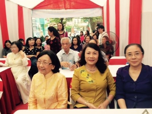 Từ trái qua: GS.TSKH Phạm Thị Trân Châu – Chủ tịch Hội Nữ Trí thức Việt Nam, TS. Nguyễn Thị Nghĩa - Thứ trưởng Bộ GD&Đ, bà Hoàng Thị Ái Nhiên – Phó Chủ tịch Hội Liên hiệp phụ nữ Việt Nam cùng các đại biểu dự buổi lễ