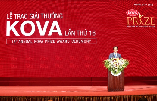 Phát biểu tại Lễ trao giải, Phó Thủ tướng Vũ Đức Đam đánh giá cao thành công của Giải thưởng KOVA lần thứ 16 cùng những cá nhân, tập thể được nhận Giải thưởng và học bổng đã nỗ lực vượt lên chính mình, vượt qua khó khăn để cuộc sống ý nghĩa hơn.