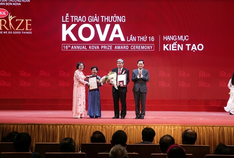 Phó Thủ tướng Vũ Đức Đam và Chủ tịch Ủy ban Giải thưởng KOVA Nguyễn Thị Doan trao giải cho hạng mục Kiến tạo