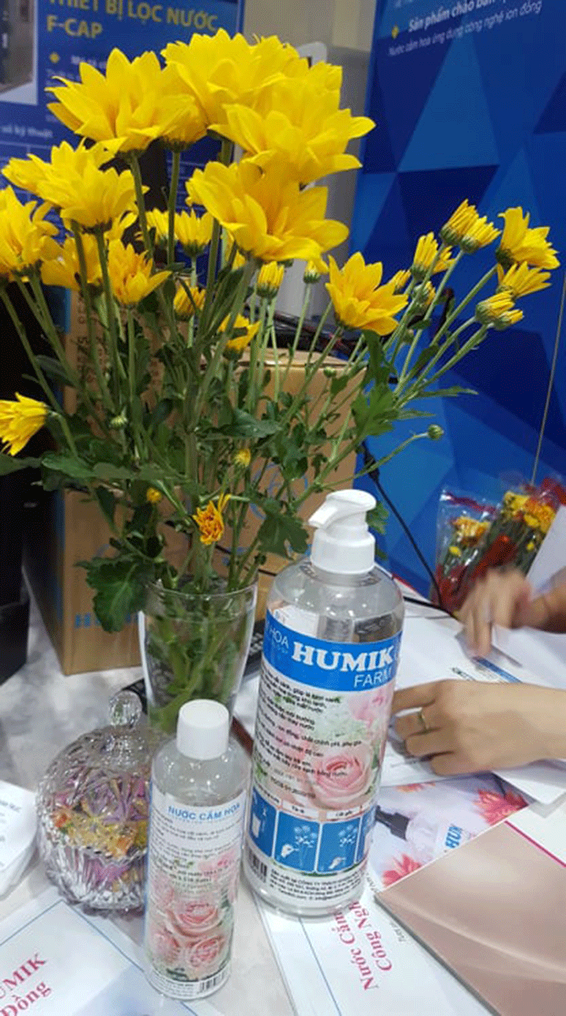 Dung dịch Humik do ông Lê Trung Hiếu và các cộng sự ở Công ty TNHH Ewater Engineering nghiên cứu, giúp tăng thời gian bảo quản hoa, phục vụ tốt nhu cầu vận chuyển dài ngày hoặc xuất khẩu.