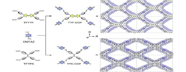 Khung hữu cơ cộng hóa trị (COF) là vật liệu tinh thể xốp được biết đến với nhiều ứng dụng tiềm năng, bao gồm cảm biến hóa học và lưu trữ năng lượng. Nhóm nghiên cứu đã tổng hợp hai VCOF thông qua sử dụng tetrathiafulvalene (TTF) và tetraphenylethylene (TPE).