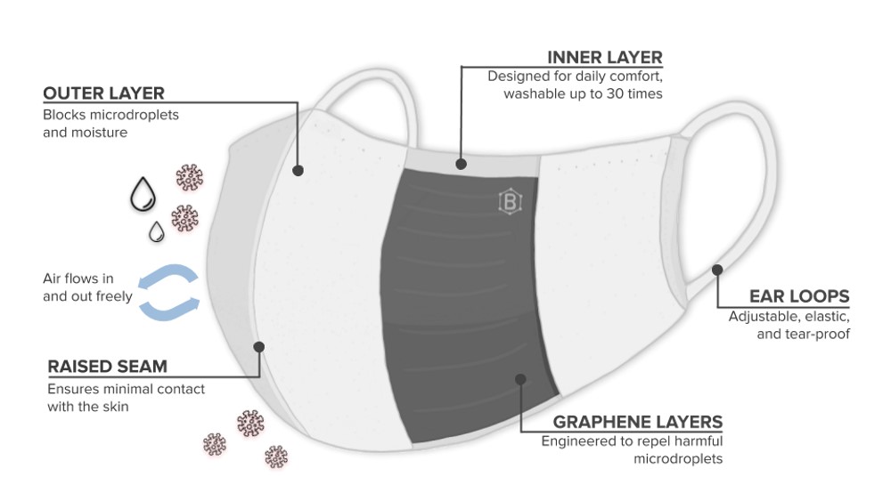 Anh chia sẻ với Viện Công nghệ Stevens (Mỹ): “Mặc dù chưa có nghiên cứu chính thức, nhưng công thức graphene độc quyền giúp sản phẩm của chúng tôi trở thành chiếc khẩu trang kháng khuẩn tốt nhất hiện tại, bảo vệ người đeo và cả những người xung quanh.”