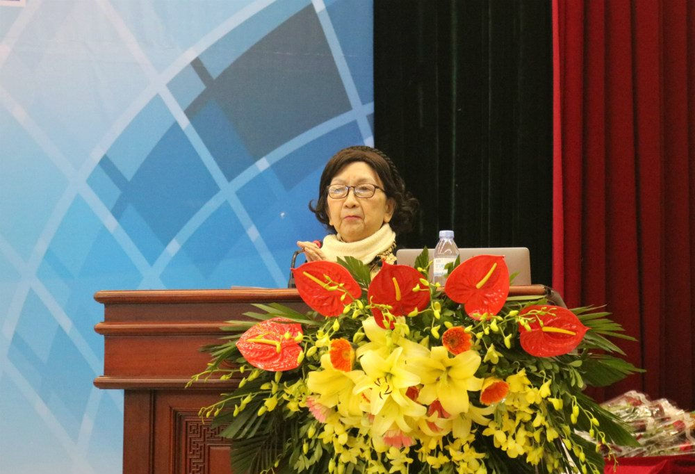 GS.TSKH. Phạm Thị Trân Châu - Chủ tịch Hội Nữ Trí thức Việt Nam phát biểu tại Hội nghị